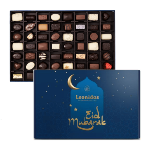 Discover an assortment of 56 alcohol-free Pralines, perfect for celebrating Eid Mubarak.