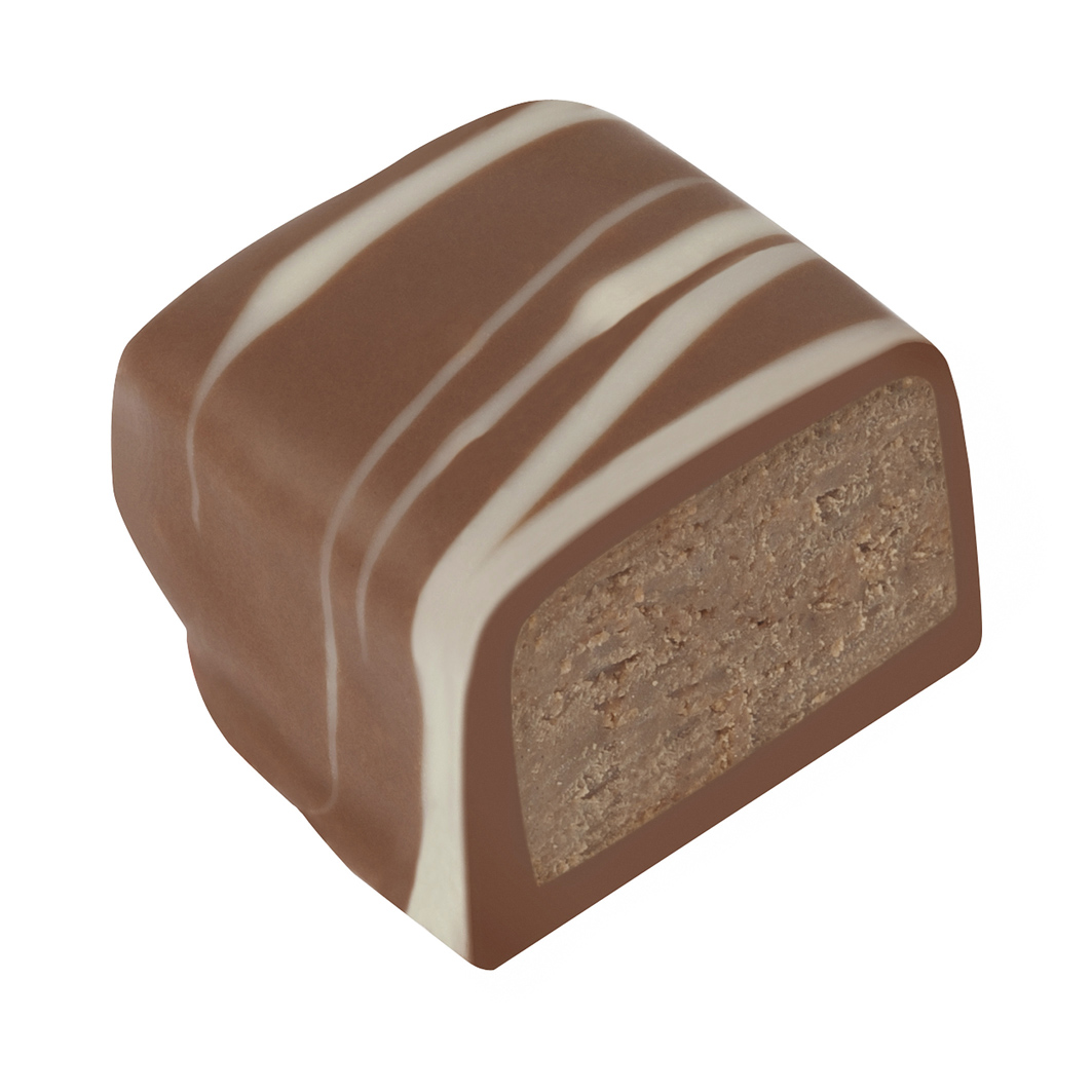 A Leonidas milk chocolate-coated praline, decorated with Leonidas white chocolate, and filled with delicious crunchy praline enriched with feuilletine, inspired by Bruges lace biscuits.