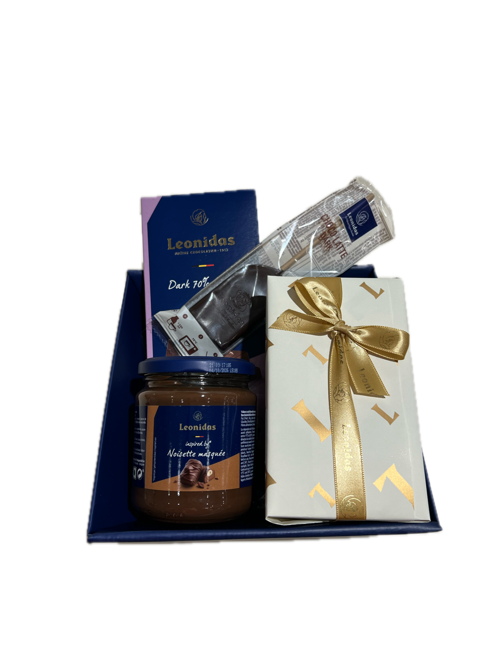 The “Mini Happiness” gift box includes 1 300 g mixed alcohol-free ballotin, 1 chocolate bar, 1 spread, and 1 ChocoLatte. The perfect gift to give—or to treat yourself.