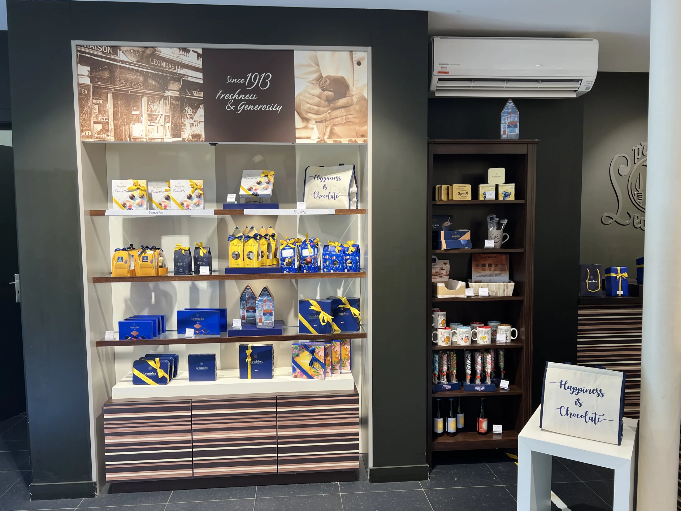 Zoek je een Leonidas-franchisewinkel in Grez-Doiceau? Het is niet echt een Leonidas-chocolaterie, maar een franchisewinkel met de naam “Les Petits Bonheurs de Ju”.