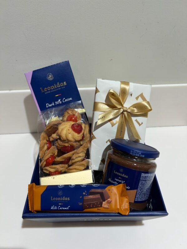 De geschenkdoos «Gedeeld Geluk» bestaat uit 1 ballotinmix zonder alcohol van 500g, 1 reep, 1 smeerpasta, 1 staaf en 1 zakje koekjes. Dit cadeau is perfect om te geven of om zelf van te genieten.