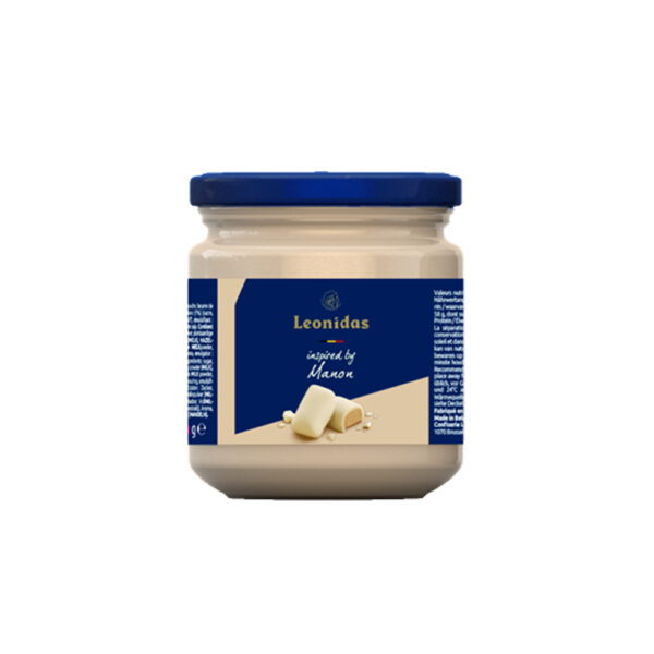 De beroemde Manon van Leonidas, nu als smeuïge chocopasta met cacaoboter en zonder palmolie. Een iconische witte chocolade- en koffiesmaak, om op elk moment van de dag van te genieten, bij het ontbijt of als tussendoortje.