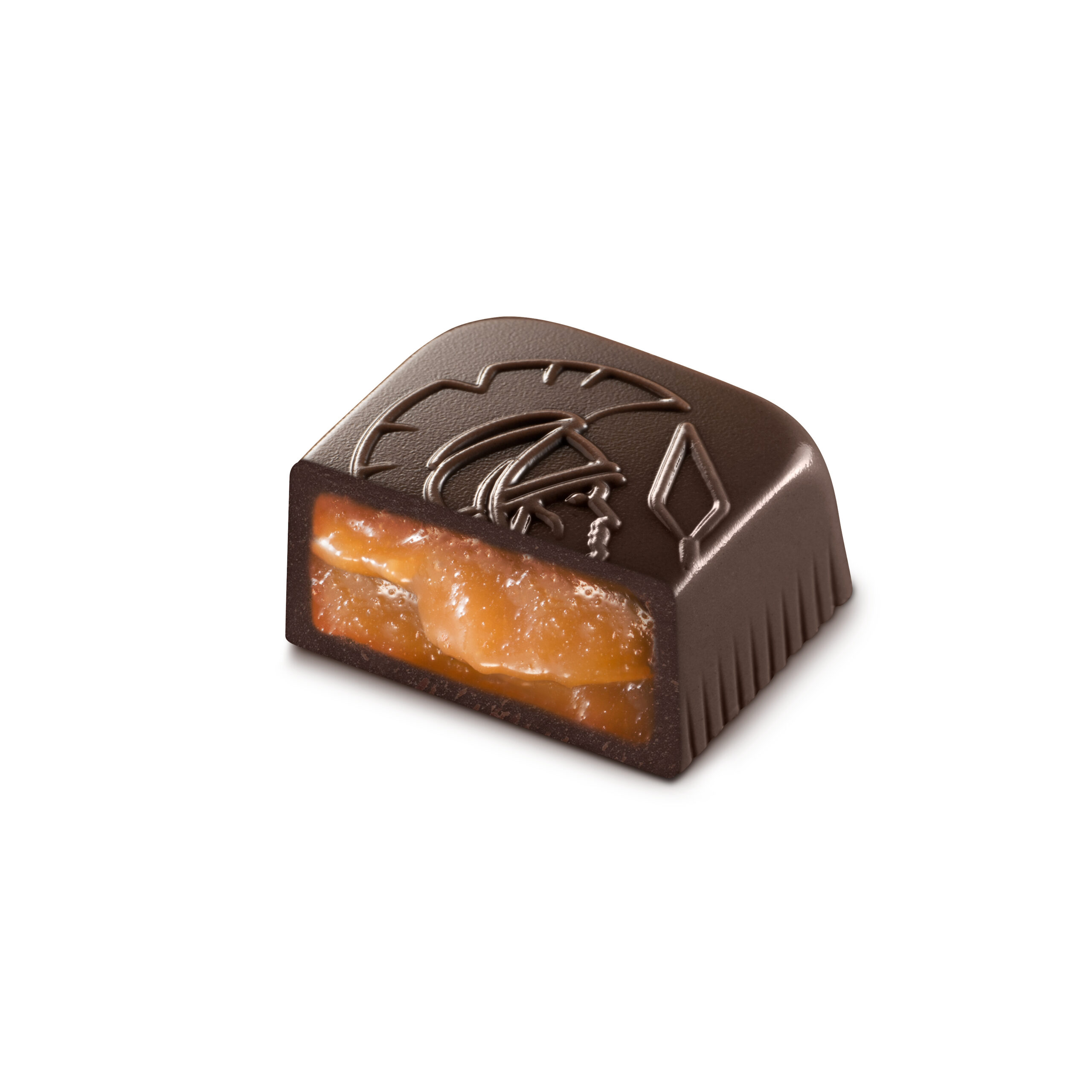 Une praline aux saveurs de brise et d’embruns. Au nom évocateur de Bretagne, cette praline surprend avec son association sucrée-salée, offrant un équilibre parfait entre sa coque de chocolat noir Leonidas et son fourrage de caramel au beurre salé.