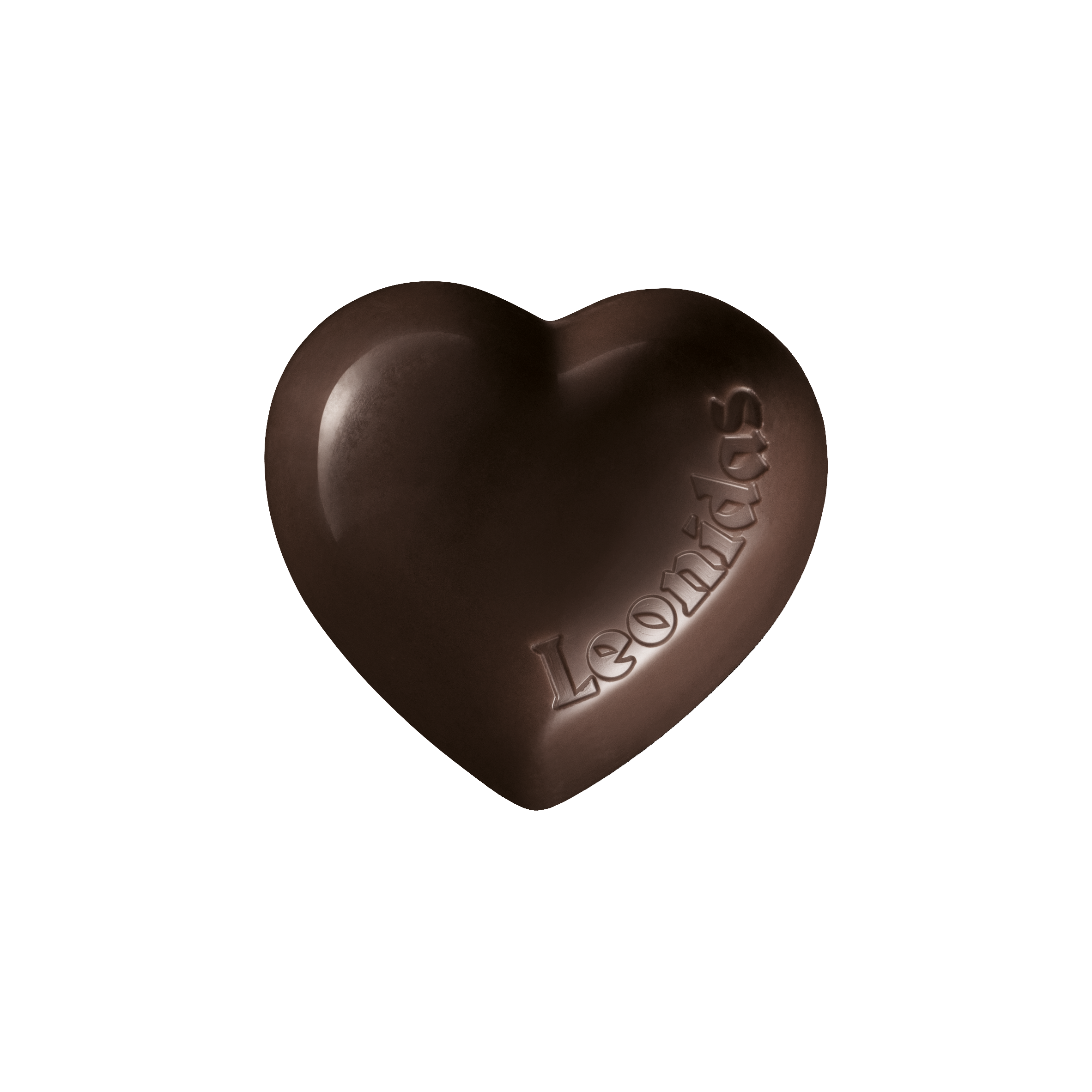 Un coeur de chocolat noir Leonidas fourré d’une ganache noire onctueuse.