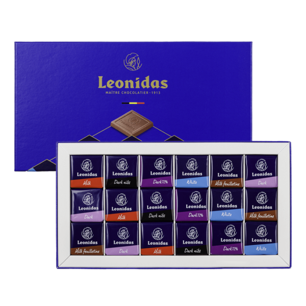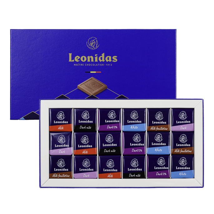 Découvrez notre assortiment de napolitains: chocolat au lait classique, avec des brisures de biscuits, le chocolat noir traditionnel, avec des morceaux de fèves de cacao torréfiée, le chocolat noir 72%, avec saveur orange et le chocolat blanc.