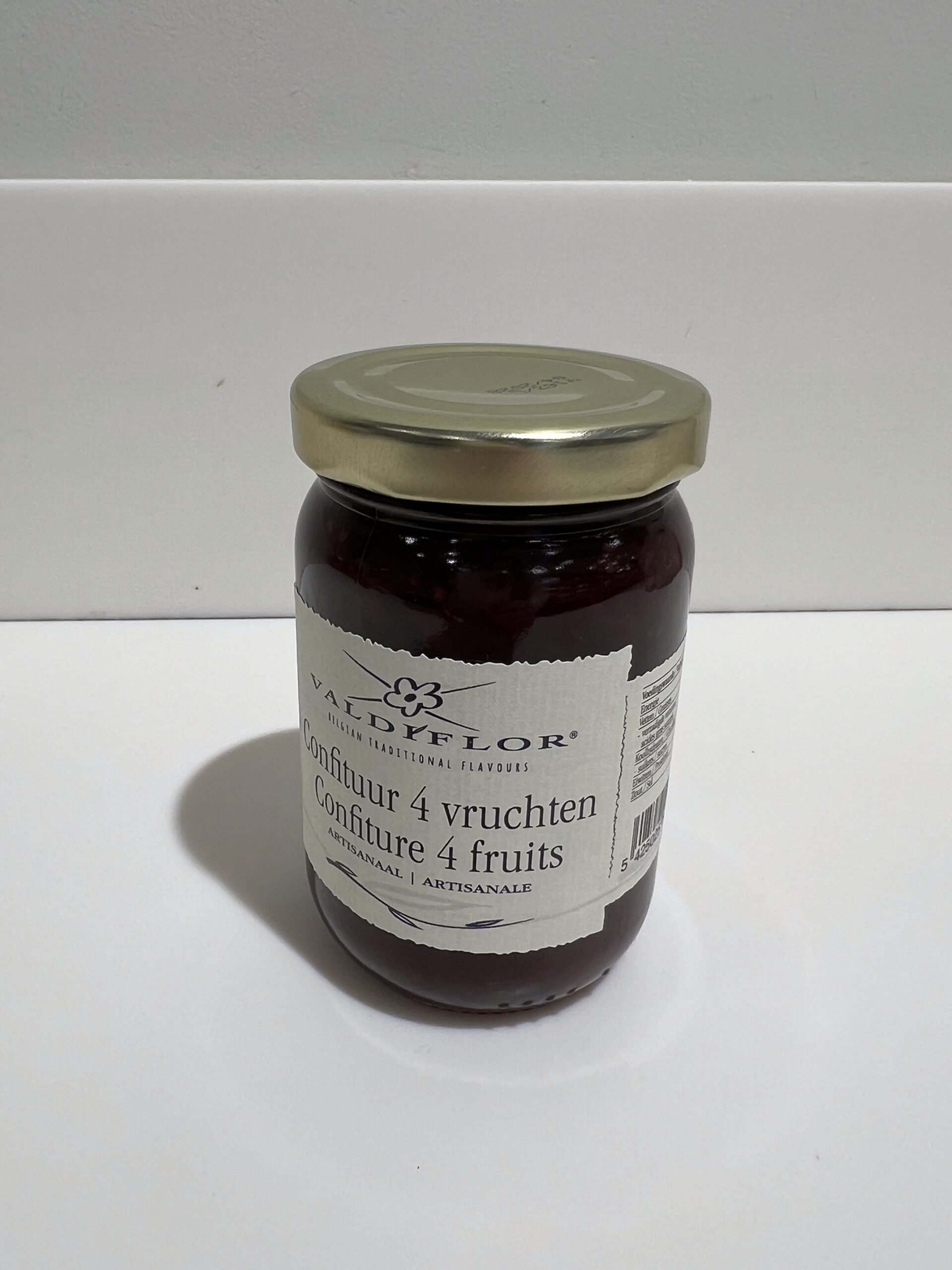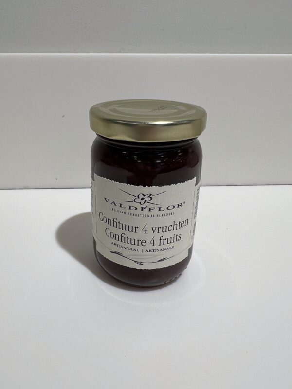 Fondez pour notre délicieuse confiture aux 4 fruits. Pot de 220g