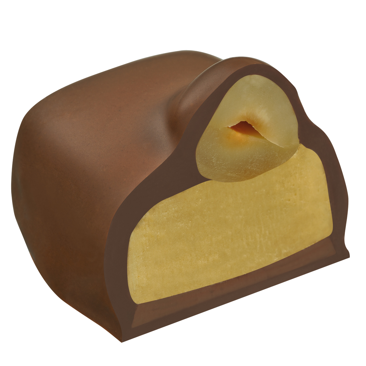 Le Manon Café, avec sa coque de chocolat au lait, une harmonie parfaite de saveurs irrésistibles. Découvrez une crème au beurre intense infusée au café 100% arabica, posée délicatement sur une fine couche de praliné et surmontée d’une noisette entière.